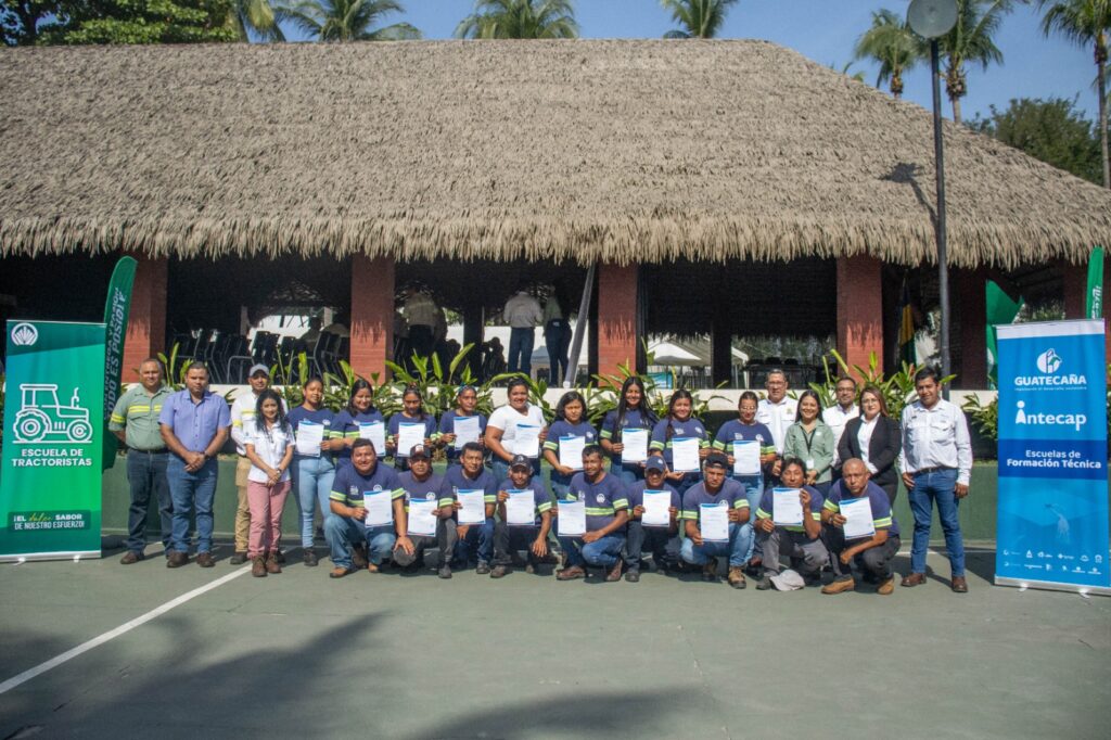 Como parte del programa Cosechando Oportunidades de Guatecaña, y sus escuelas técnicas de formación, 121 personas, se graduaron como pilotos de transporte de caña, de doble eje, de vehículo liviano, mecánico de cosechadora y tractoristas agrícolas.